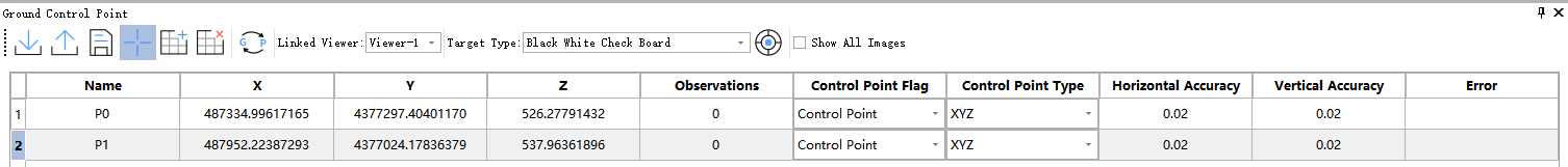- Import or mark the data objects in the window to obtain the coordinates of the control points. All imported or marked control points will be listed in the control point list window.