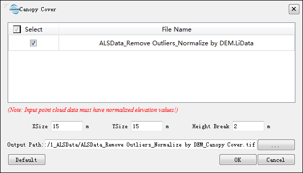 You will use the output results from Exercise 1, ALSData_Remove Outliers_Normalize by DEM.LiData in this exercise.