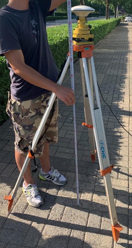 1.4 Level the receiver antenna and record the height of the GNSS rover rod. Please refer to the manufacturer’s GNSS Base-Rover RTK/PPK surveying system manual for more information on how to collect measurements with the third-party surveying equipment being used.
