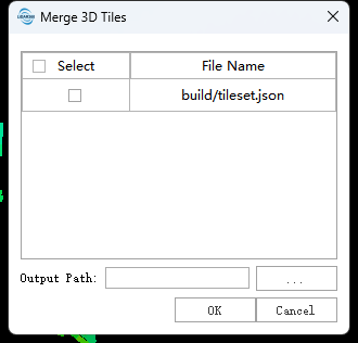- Input data: Enter the 3dtiles root node .json file that needs to be merged.