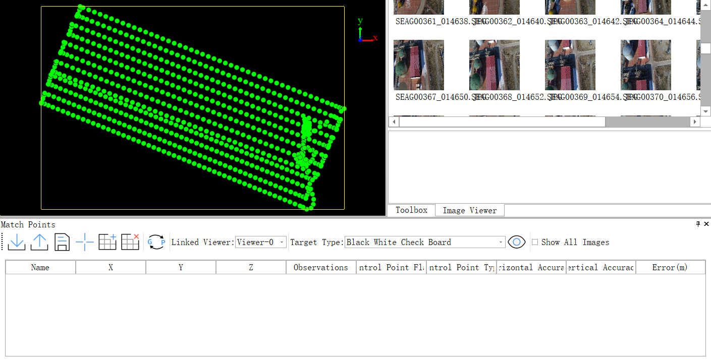 - Select a control point from the list, choose an image from the candidate images, and click the corresponding observation position of the control point in the single image window to complete a marking.