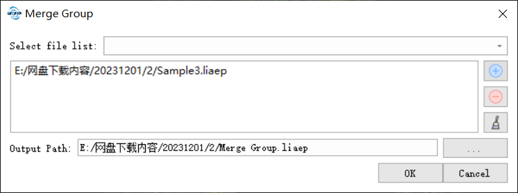 Input path: Select the image project group to be merged. After selection, all image projects for the group are listed on the list.