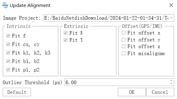 - Click "Update Alignment." In the pop-up dialog box, select the image project for which you want to perform the update alignment.