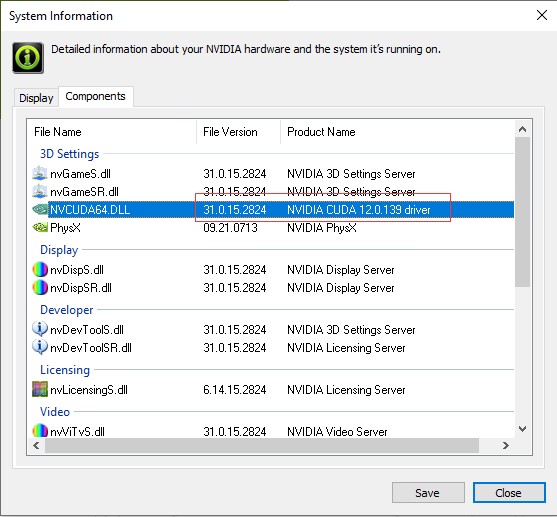 (1)Right-click on the desktop to open the NVIDIA Control Panel. Select Help->System Information->Components, and check the highest CUDA version supported by the current graphics card driver. As shown in the example in the figure, the highest supported CUDA version is 12.8.
