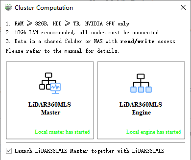 2.Launch the LiDAR360MLS Master and the LiDAR360MLS Engine on the corresponding devices.