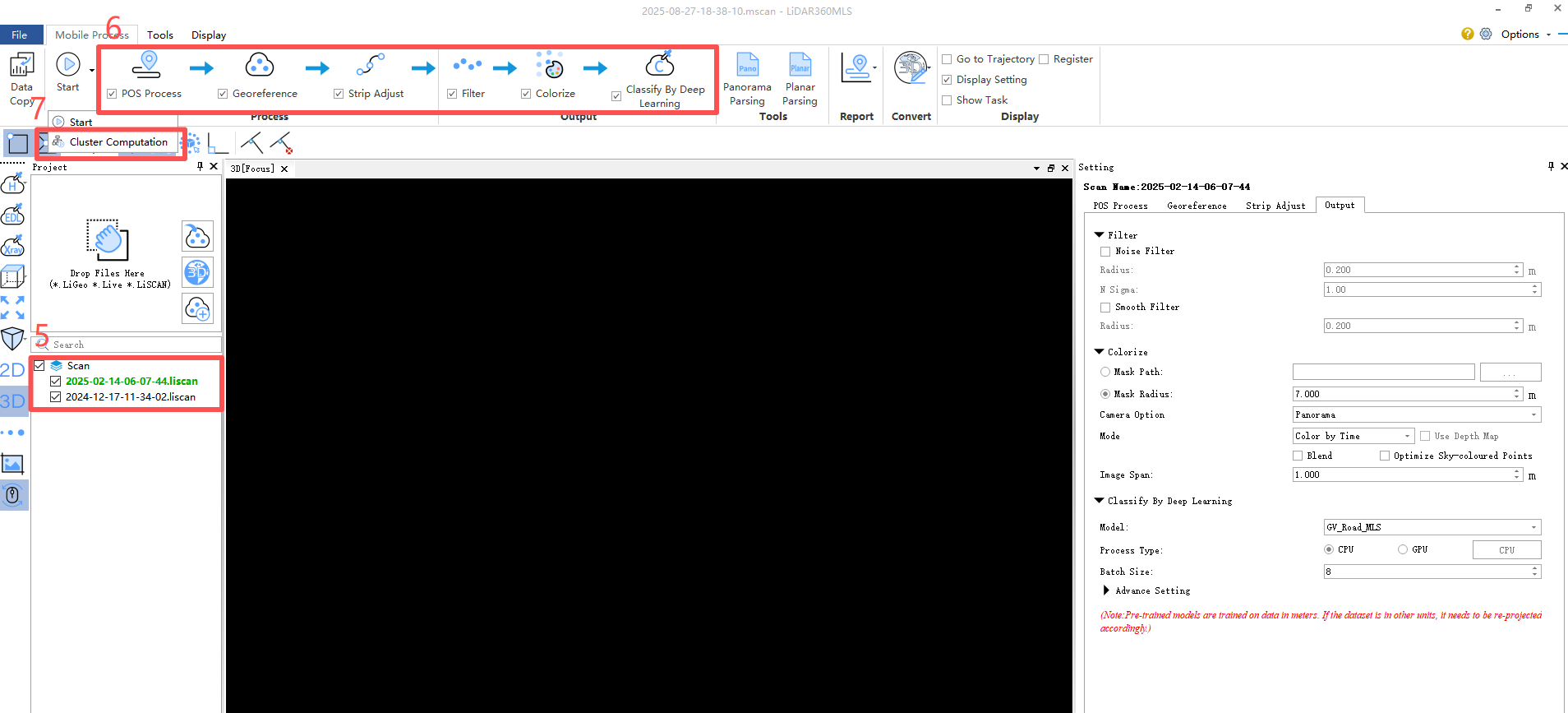 5.Switch to the Mobile Process interface in the main LiDAR360MLS software, and select the Liscan projects that need to be assigned to the worker nodes.