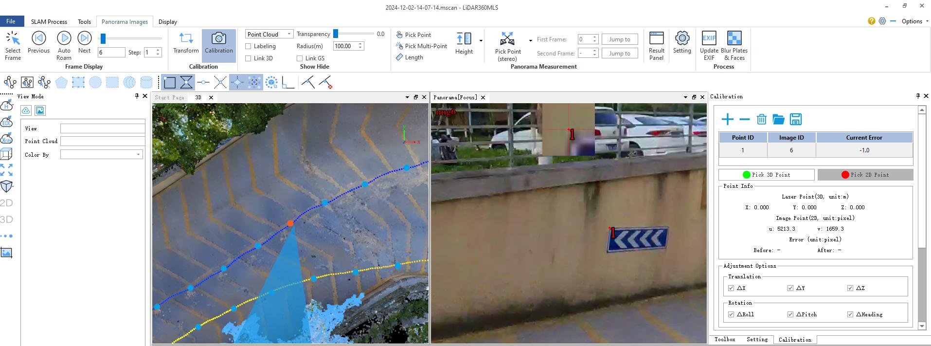 3.Click Pick 3D Point Button to select the corresponding LiDAR points for the image points in the panoramic window.