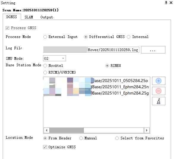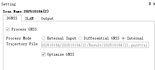 Optimizes GNSS positioning (RTK or PPK results) based on SLAM results, suitable for scenarios such as forests, complex urban environments, substations, and waterways; This option is not selected by default.