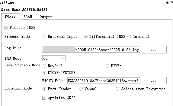 If pointcloud data with absolute positioning is required, check 'Process GNSS'. There are three GNSS processing modes, and the differences between them are:
