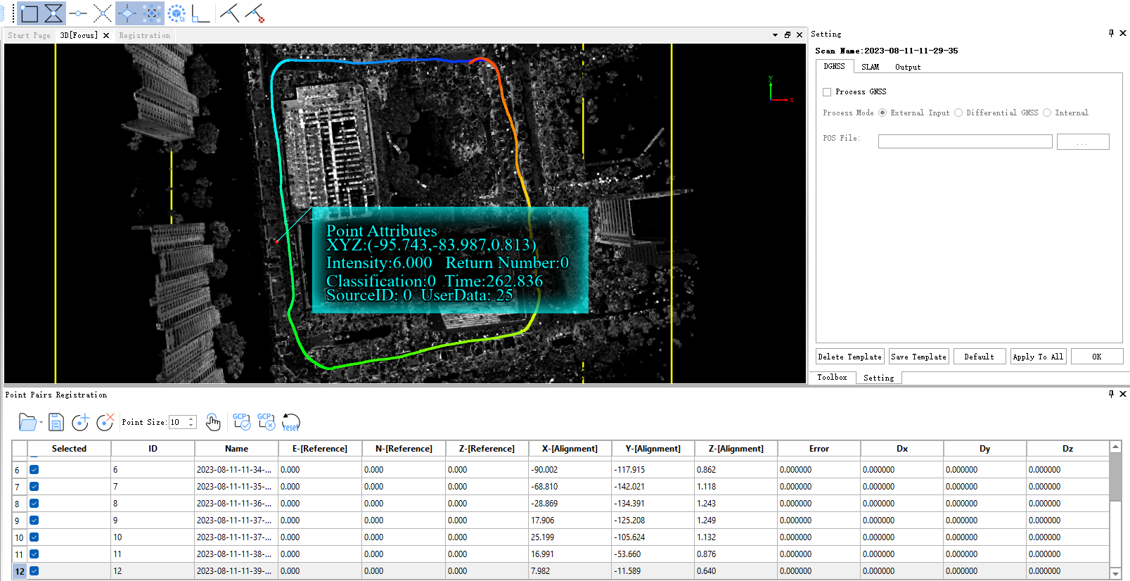 At this point, the interface will pop up the point pairs registration dialog, the GCPs positions will be displayed in the 3D window, and geotag.txt will be automatically loaded.