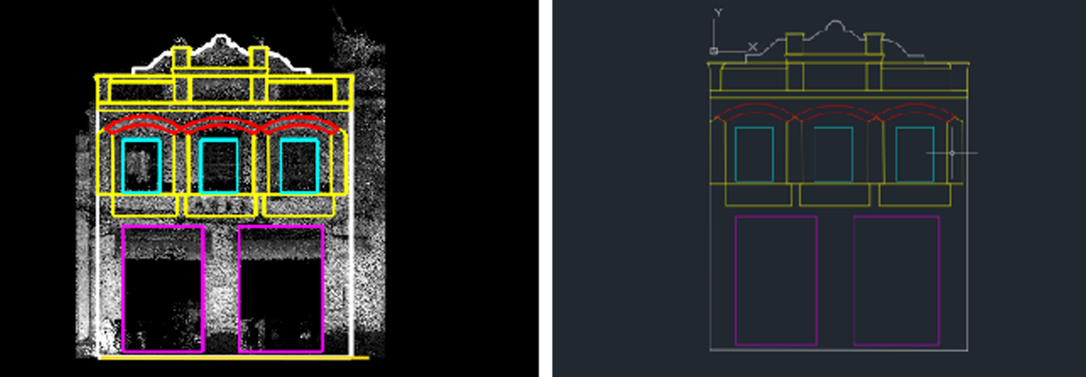 Due to the different construction techniques and qualities of urban buildings, the life span of buildings is uneven. The reconstruction of the building facades coming up on its lifespan needing renewal is conducive to coordinating the urban landscape and prompts the city's image. Renovation or expansion requires operators to quickly complete the building elevation drawings with high quality to create the digitization and visualization of buildings. Lidar has the characteristics and ability to achieve fast, non-contact, real-time, high precision, strong initiative, and all-digital feature recording. It can quickly and massively collect building facade information, providing a way to measure building facades promptly—a brand-new technical means.